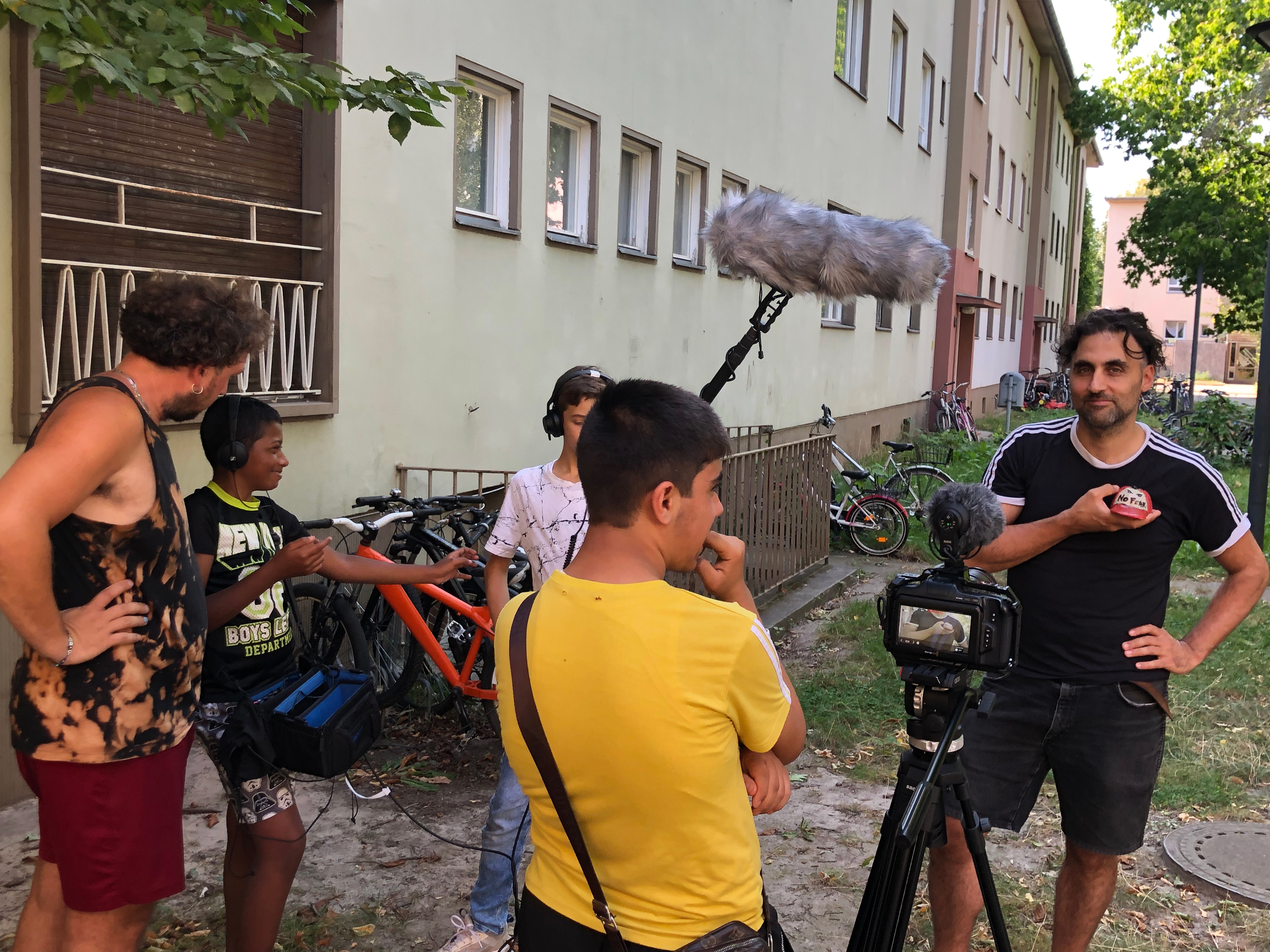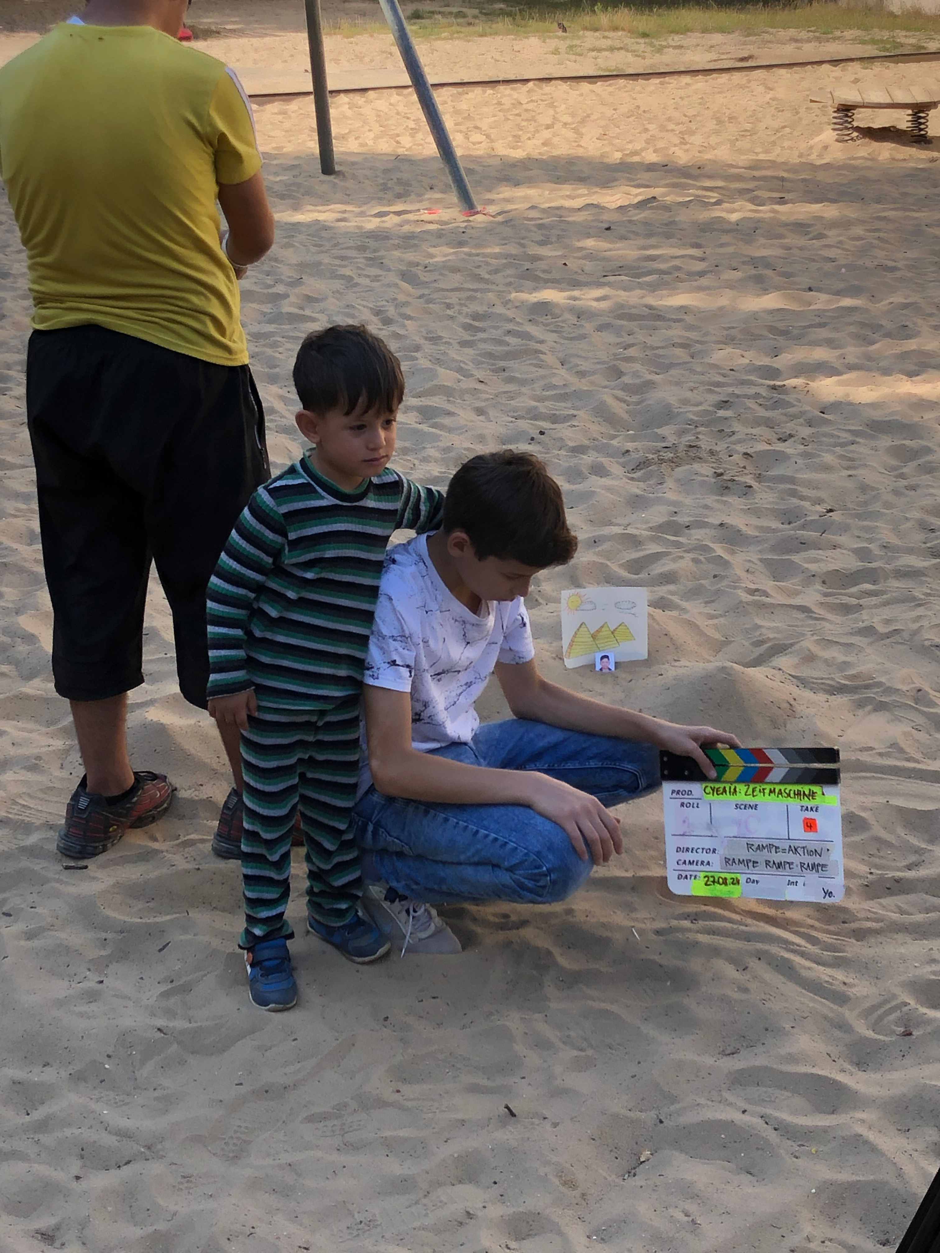 Über viele Tage hinweg nahmen wir als Gruppe die direkte Umgebung und das Wohnheim selbst als Ausgangspunkt unserer Experimente, filmten Warteorte, teilten Erinnerungen und verbanden diese mit persönlichen Objekten. Über zwanzig Menschen aus der Marienfelder Nachbar*innenschaft wurden von den Jugendlichen interviewt. Sie berichteten über ihr Zeitempfinden, ihre Erinnerungen an bestimmte Abschnitte ihres Lebens und ihre Assoziationen mit Zeitlichkeit. Bei Experimenten und Übungen haben wir versucht, Zeit mit der Kamera festzuhalten oder sie in unsere Körper eindringen zu lassen.